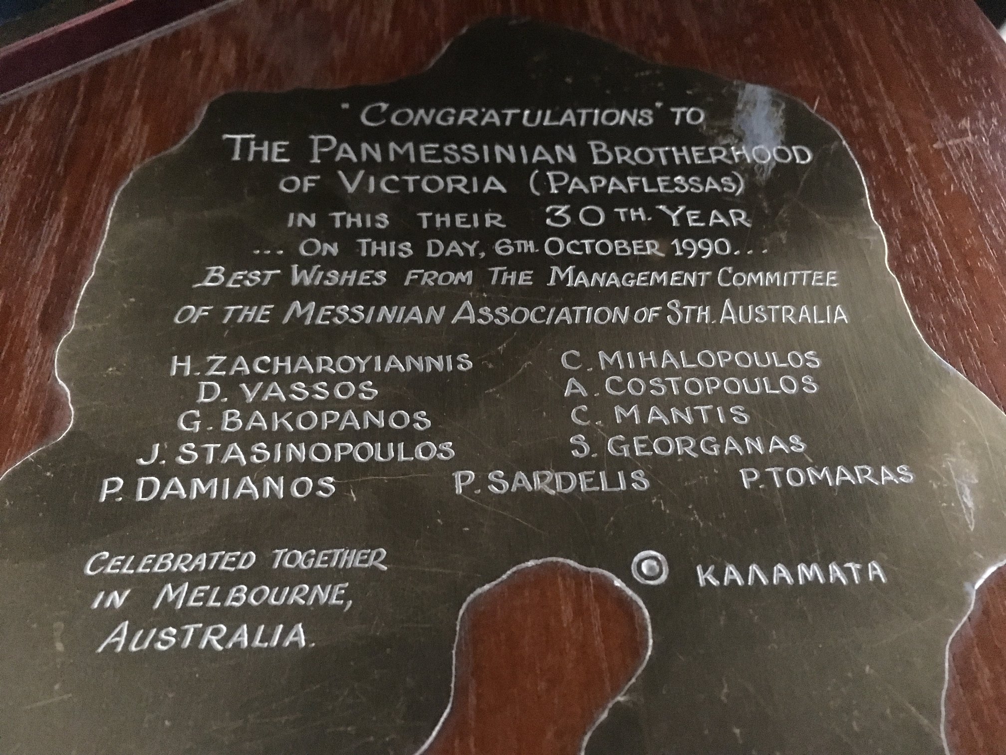 The Pan Messinian Federation of Australia and New Zealand was established to represent the Messinian organisations in Australi