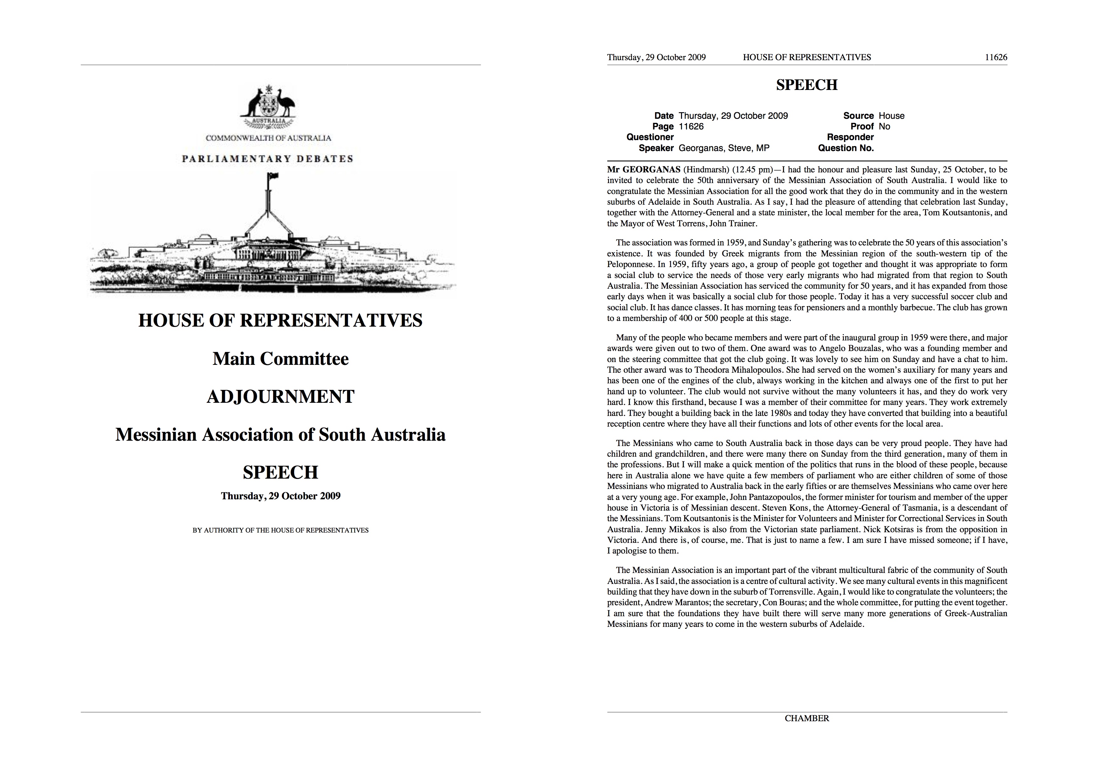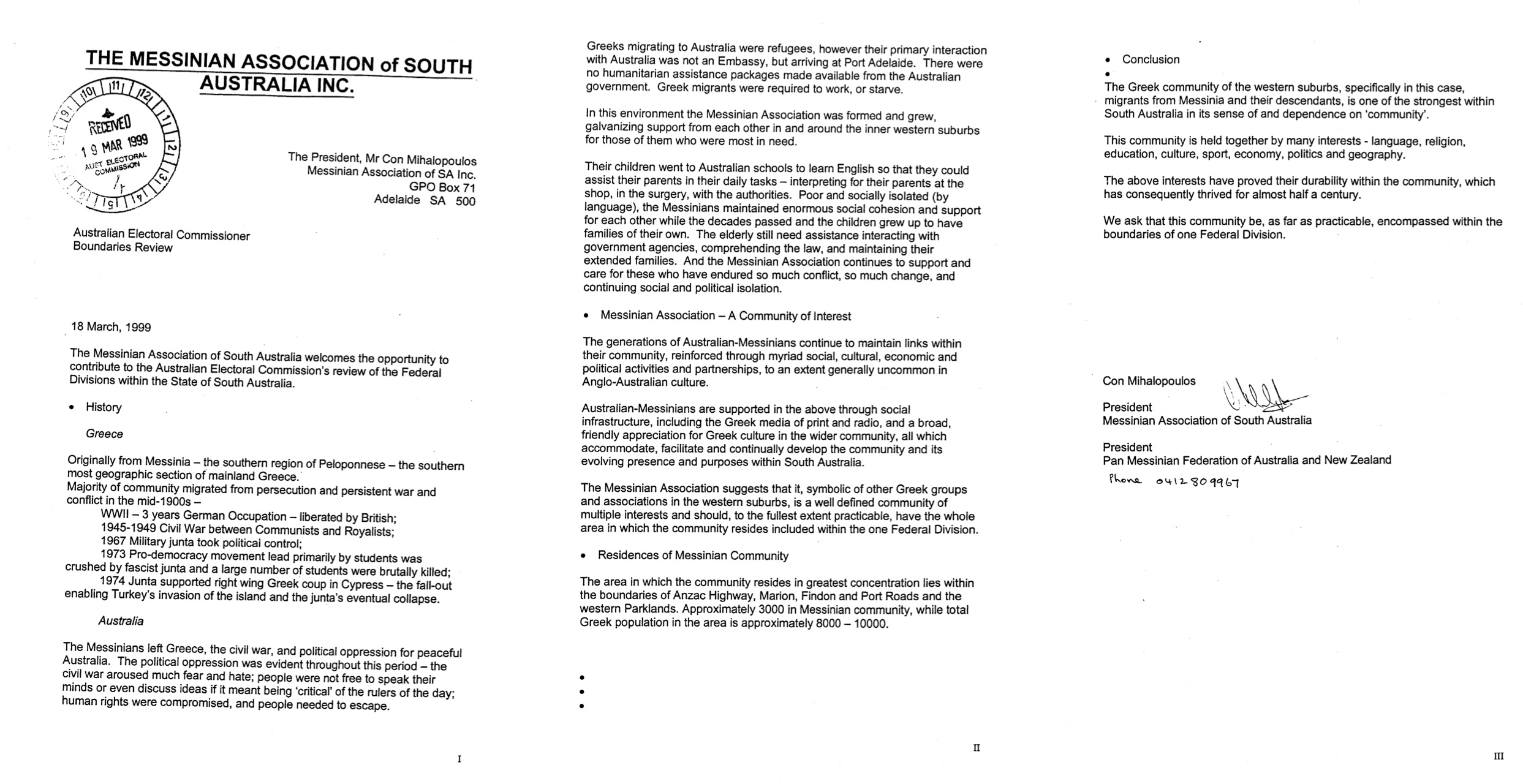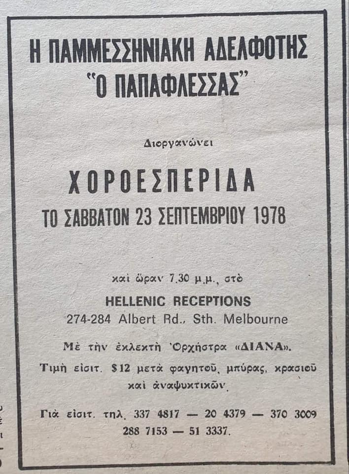 The Pan Messinian Federation of Australia and New Zealand was established to represent the Messinian organisations in Australi